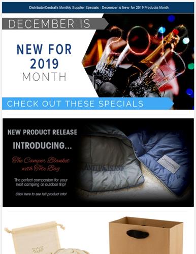 | | Your Insider Specials on New for 2019 Products from DistributorCentral | | | | The 2019 New Items are Here! from SnugZ USA | |