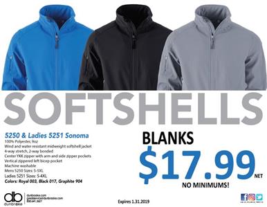 | | Greetings from Orlando - Booth #1234 from Shepenco | | | | Soft Shell Jackets - No Minimums! from Dunbrooke Apparel | |